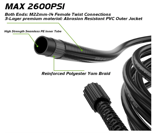 Hochdruckreinigerschlauch 10m mit Außengewinde M22