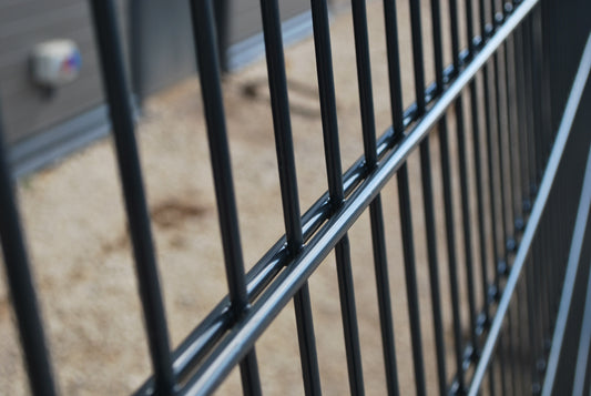 SCHIEBETOR mit Doppelstabmatte 8/6/8mm, inkl. 2 Pfosten und Zubehör