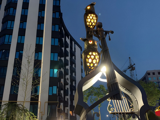 Eulen auf Kontrabass - Metallskulptur - Statue