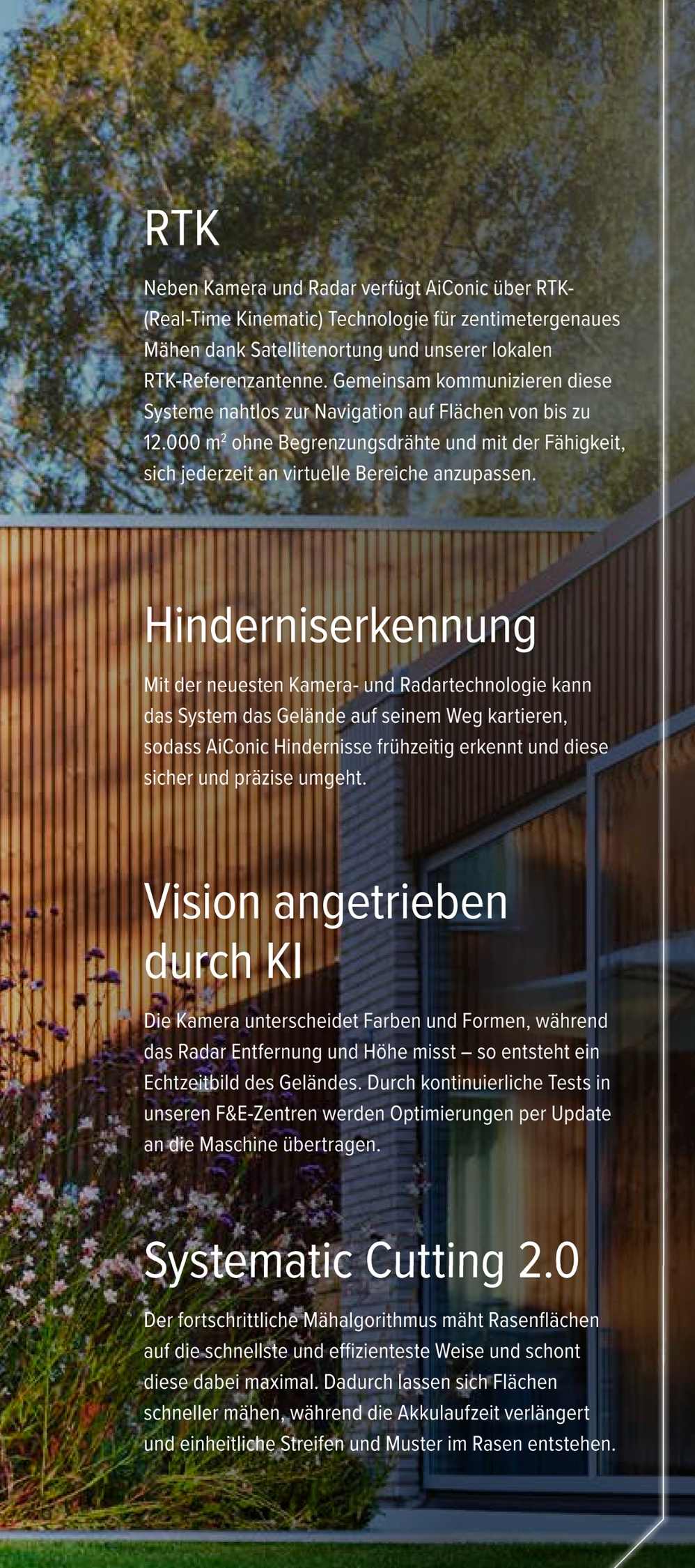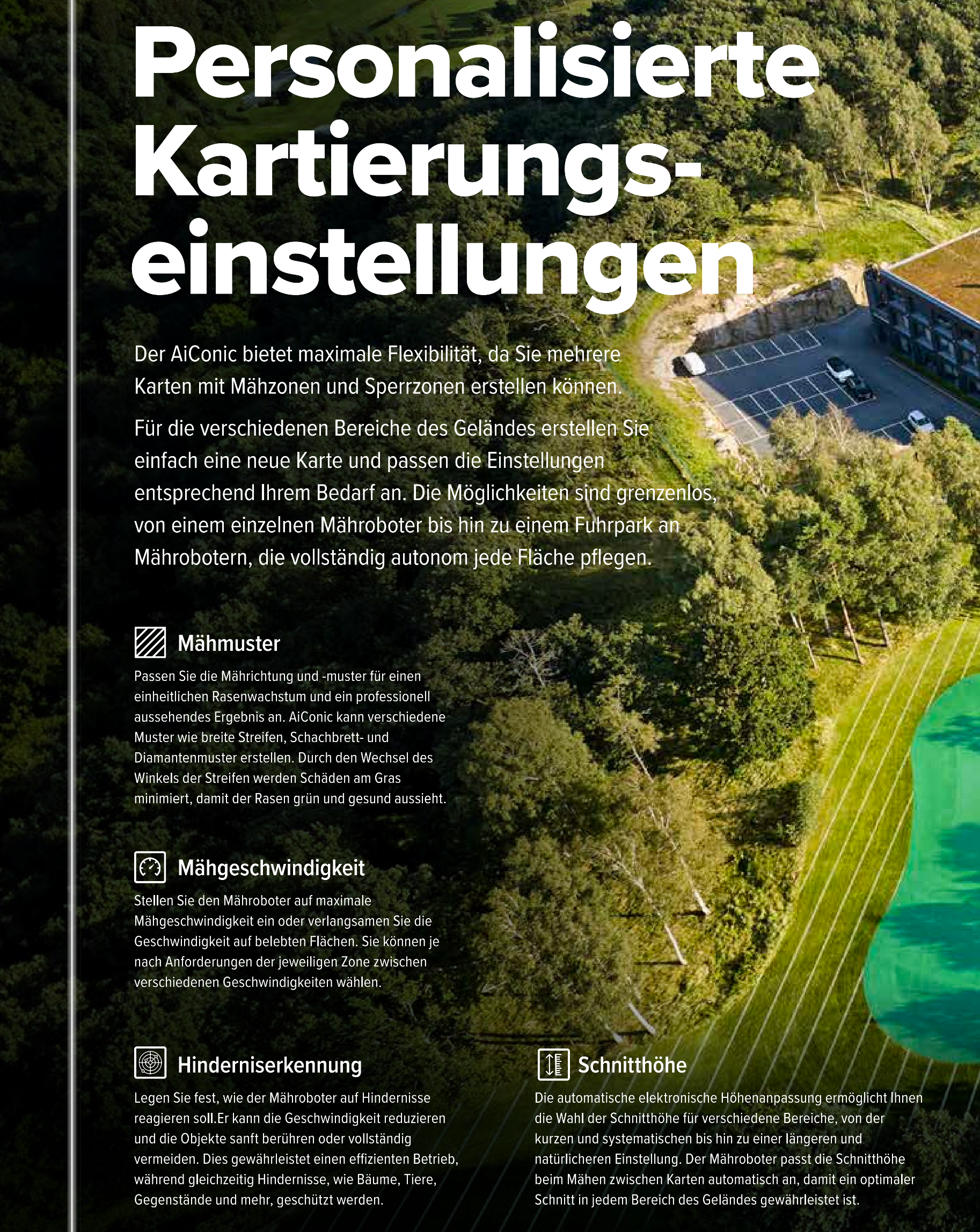& Satellitenpositionierung kombiniert, arbeitet der Mäher nahtlos